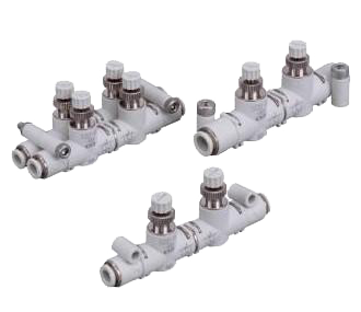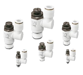 弯管型调速阀,带快插接头。对配管螺纹部涂抹了密封剂。